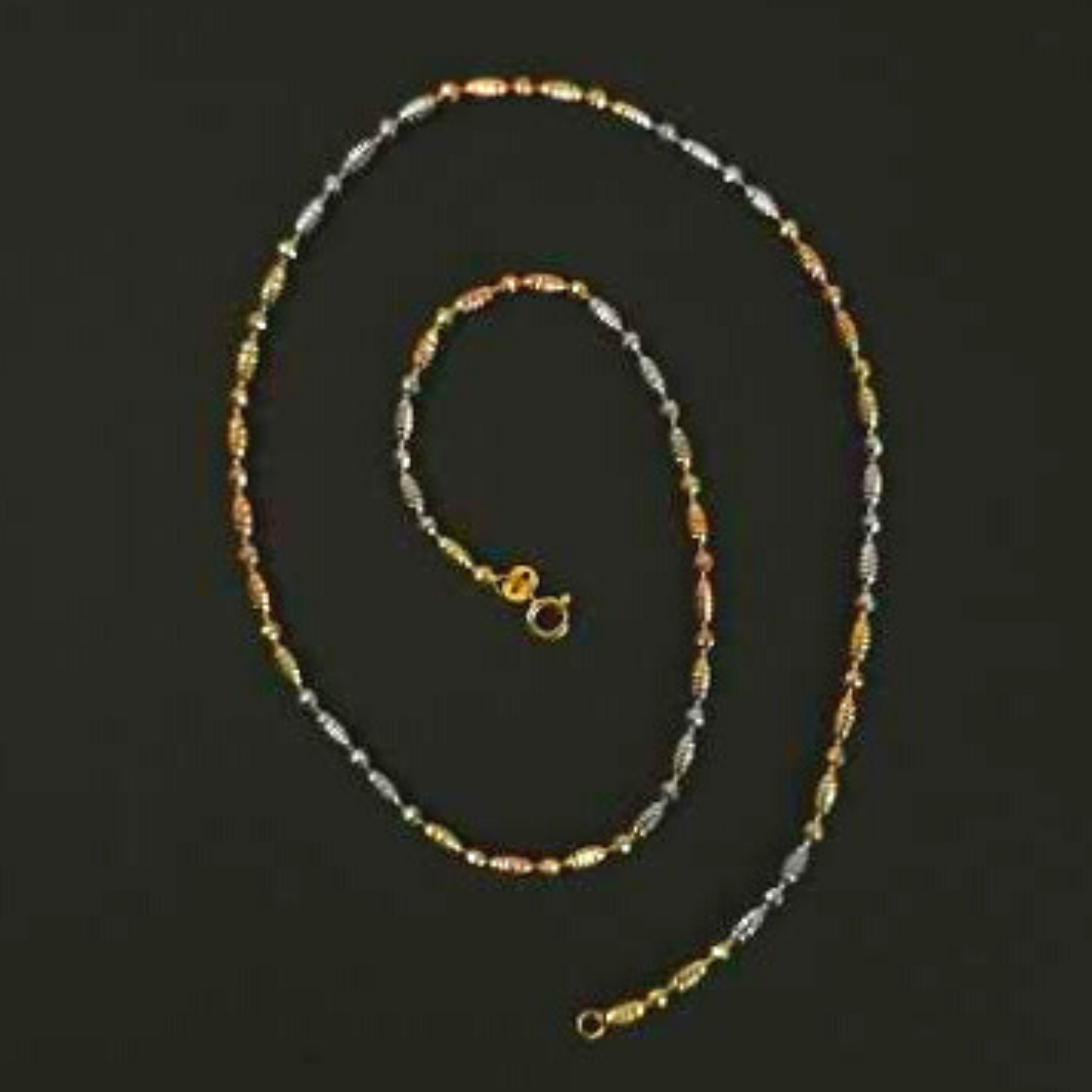 The scallop design chain features alternating barrels and interlinking chains of silver, gold and rose-gold finish to create a stunning contrast. Because of it’s multi-tone shades, this chain is a versatile addition to your accessories.Wear it solo or with a beautiful pendant and make a remarkable minimalist statement!